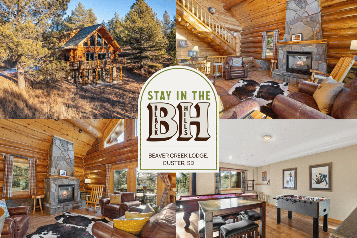 Relax and reinvigorate on 21 secluded acres near Custer, SD. Beaver Creek Lodge features oversized hand-hewn logs, vaulted ceilings, and artistic finishes that make it truly one of a kind. Enjoy serene mornings and sunsets on the wraparound deck or one of three private balconies. Nestled on a scenic hillside above Beaver Creek, it’s just 1.2 miles from Wind Cave National Park, 25 minutes to Custer State Park, 30 minutes to Crazy Horse Memorial, and 50 minutes to Mount Rushmore National Park.