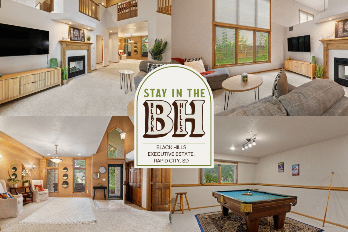 Welcome to Black Hills Executive Estate, a stunning 4-bedroom, 4.5-bathroom retreat designed with a spacious layout and multiple seating areas throughout, perfect for gathering and relaxing with family and friends.
