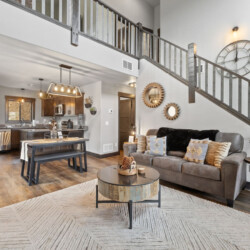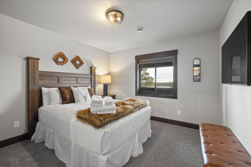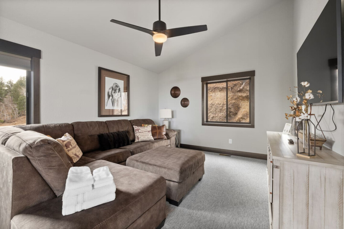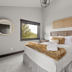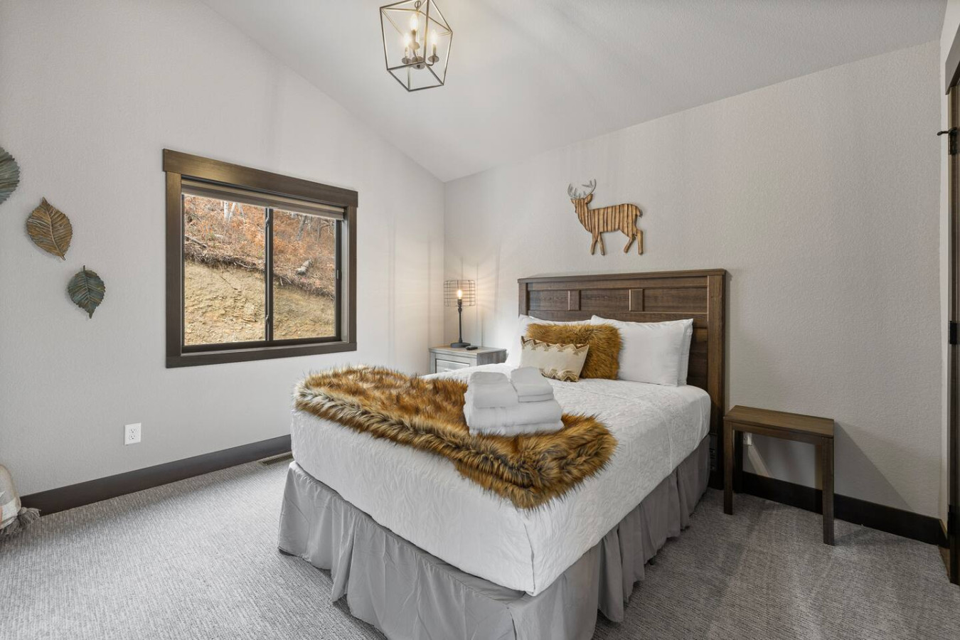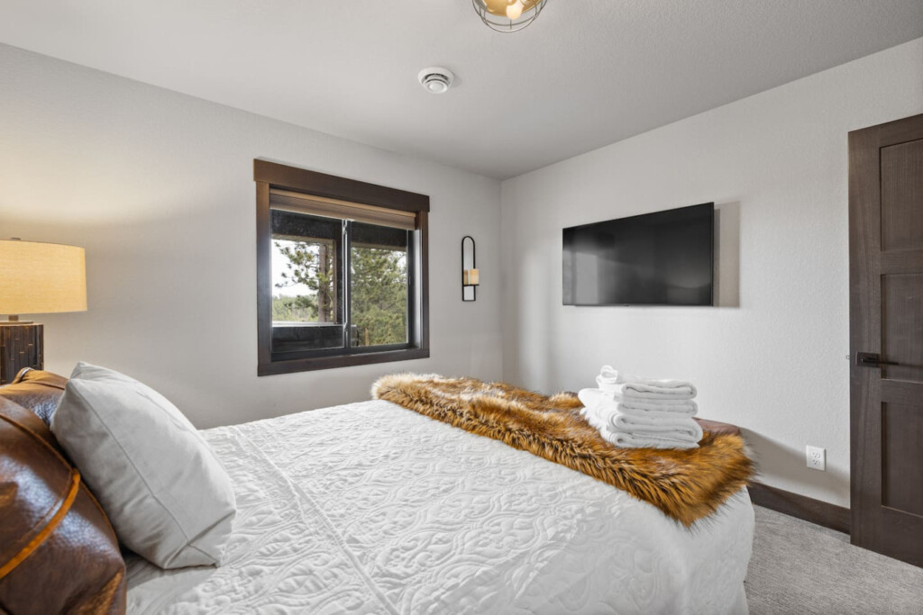 The main level features two well-appointed bedrooms, each with a comfortable queen bed, and a full bathroom for convenience. Upstairs, you’ll find an additional living area—perfect for lounging, watching TV, or playing games—along with two more bedrooms and a second bathroom, providing plenty of space for everyone to spread out and unwind.