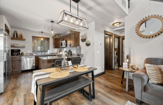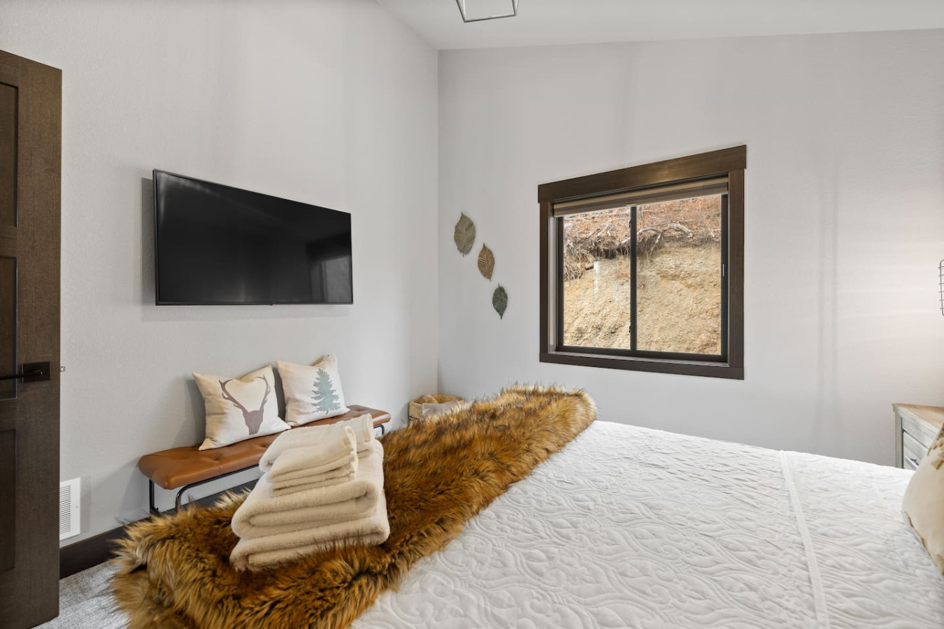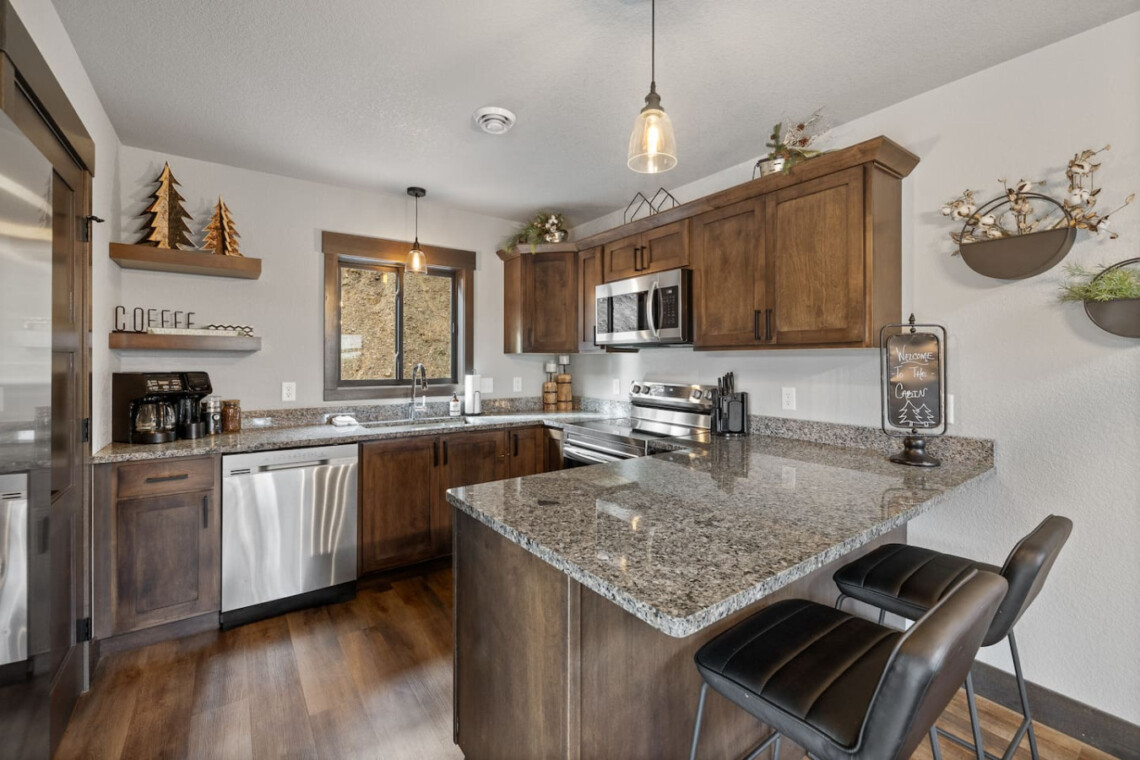 This 4-bedroom, 2-bathroom getaway offers the perfect mix of comfort and tranquility. Inside, you’ll find a spacious living room with two comfortable couches and an inviting indoor fireplace—ideal for relaxing after a day of exploring. The fully stocked kitchen comes complete with all the essentials you need to prepare delicious meals and gather around with family and friends.
