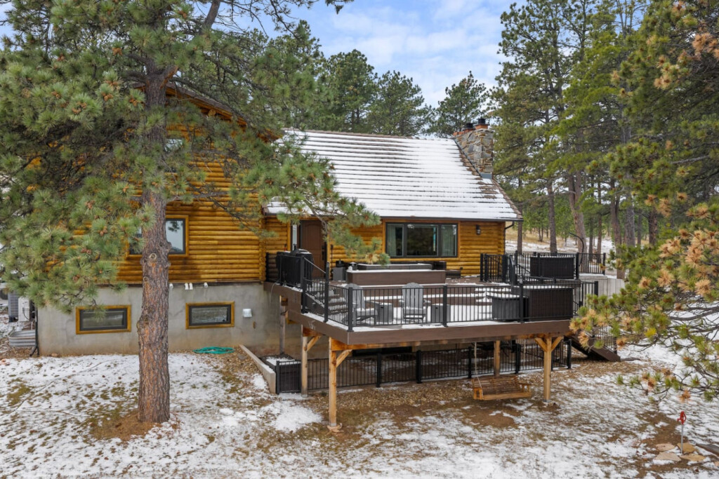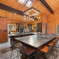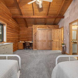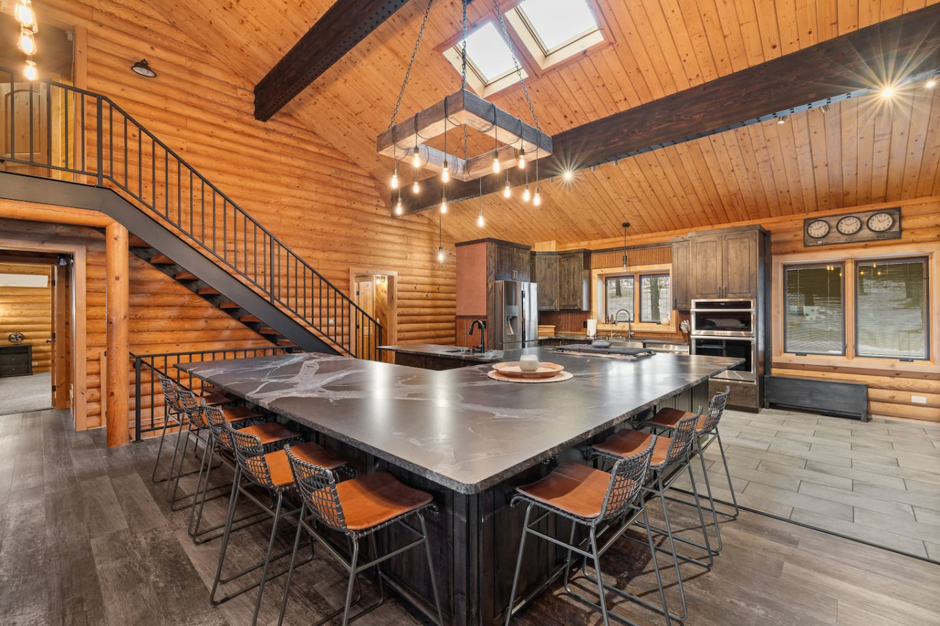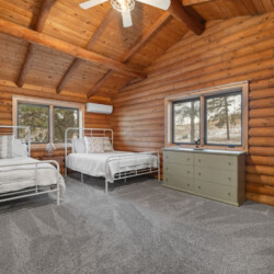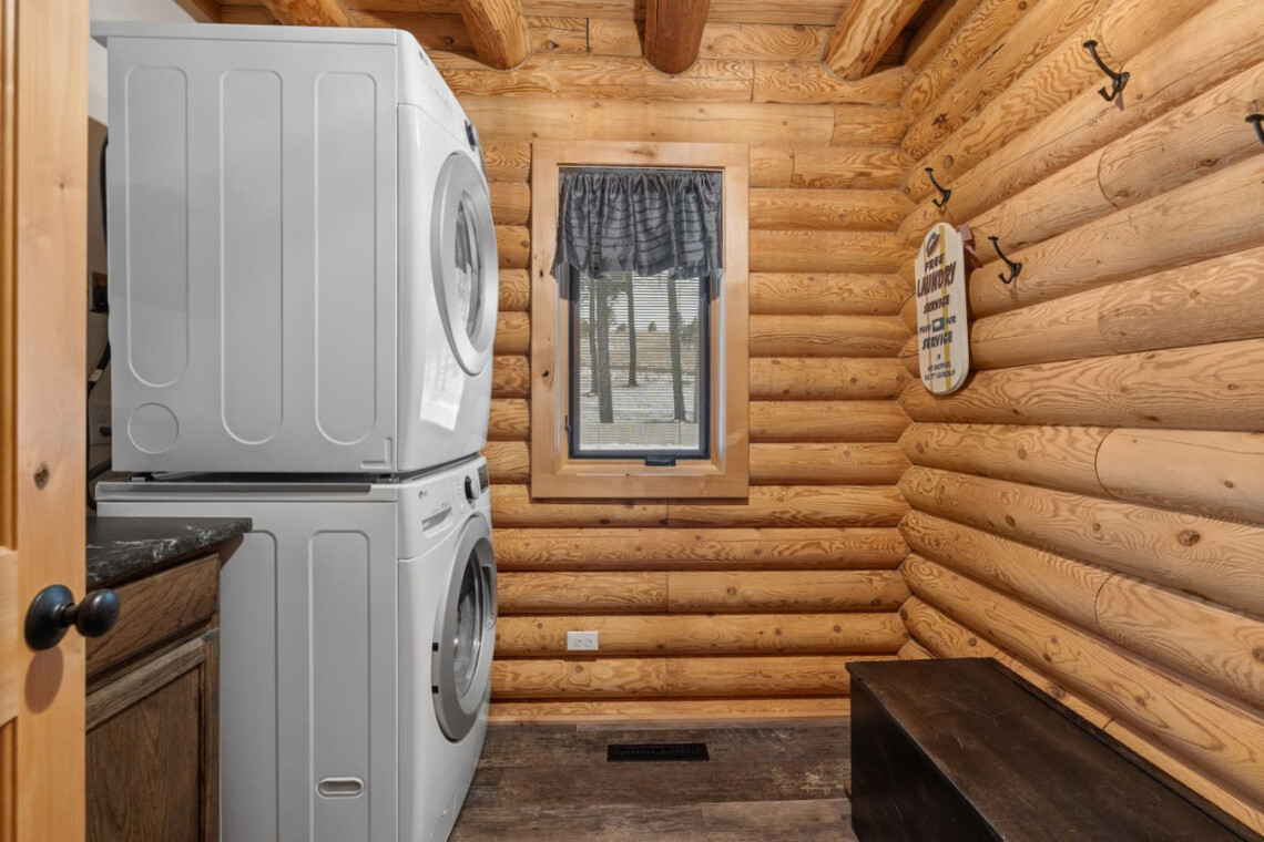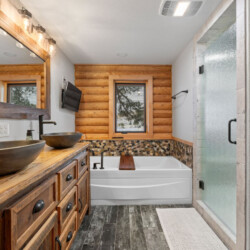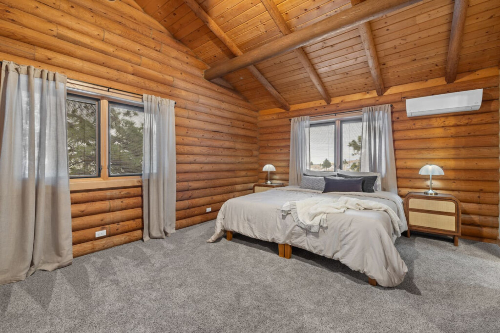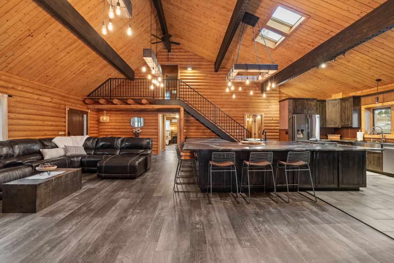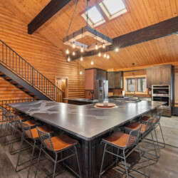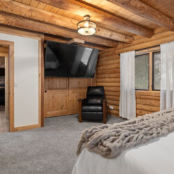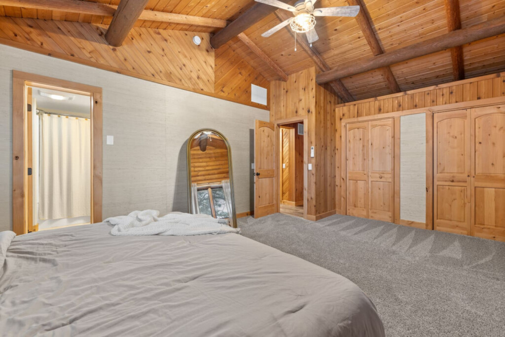 First one is Schroeder’s Grand Log Cabin Lodge — a spacious retreat featuring 5 bedrooms and 6 bathrooms.