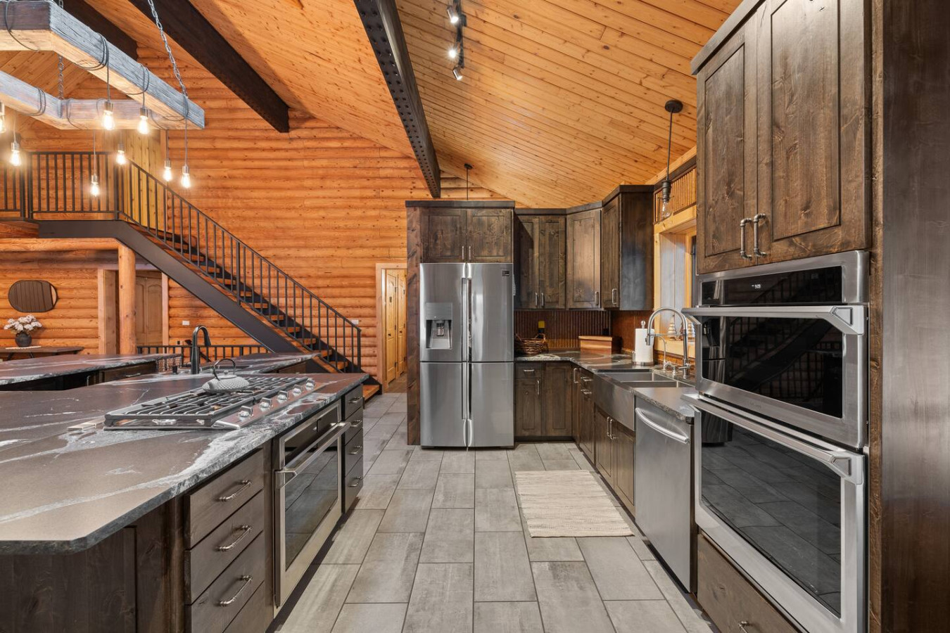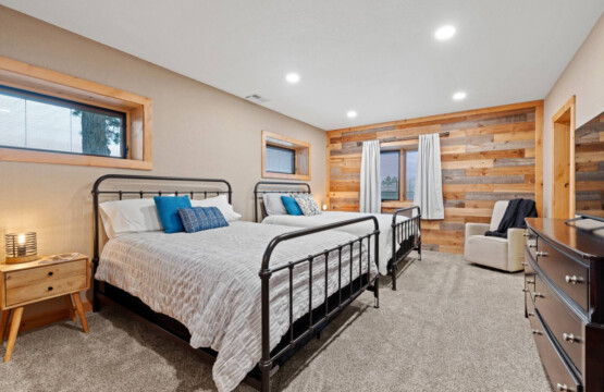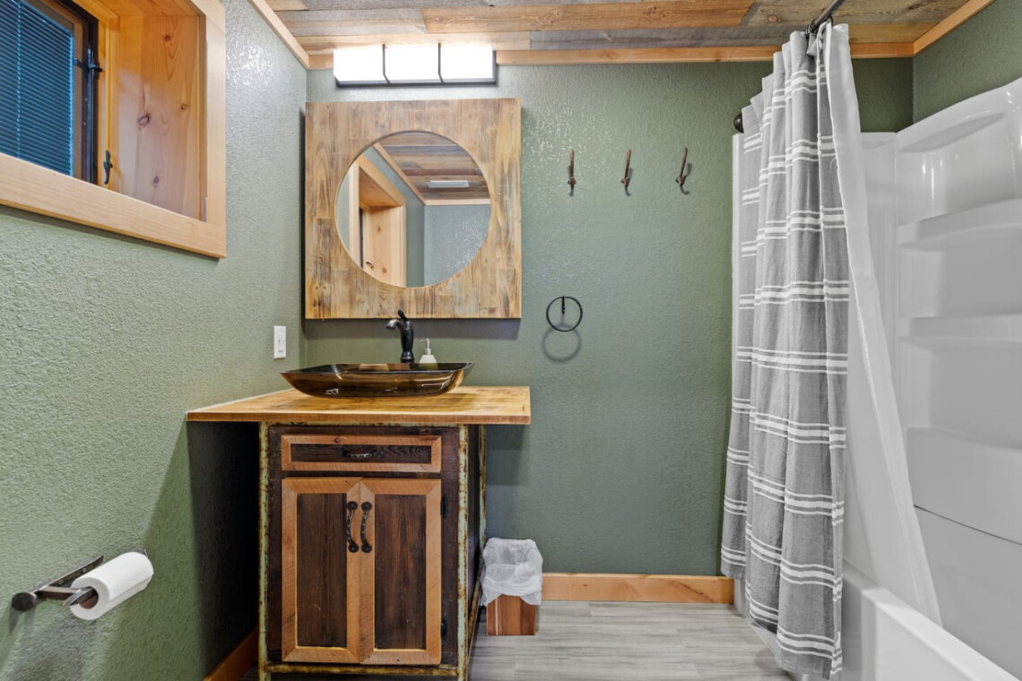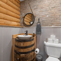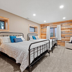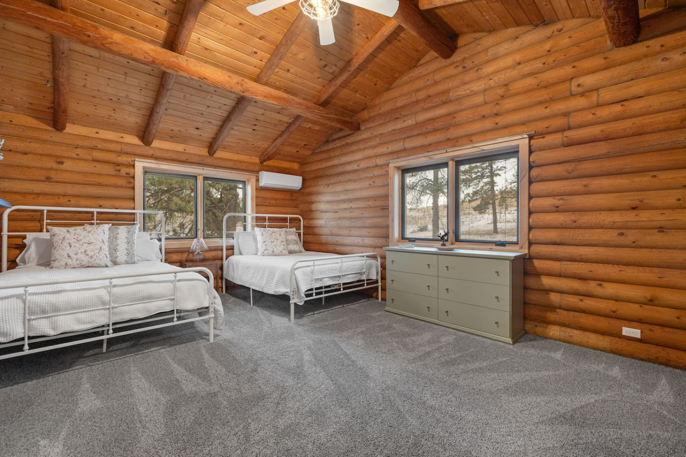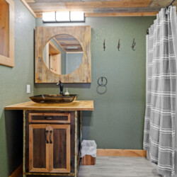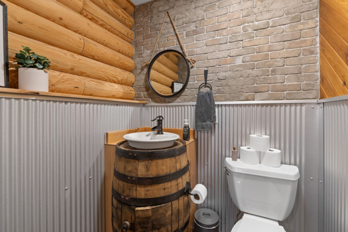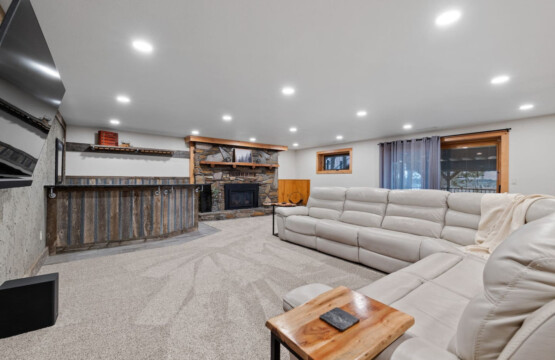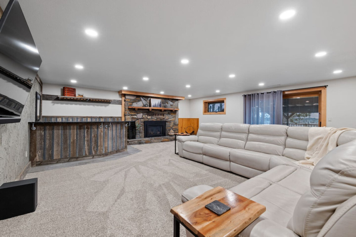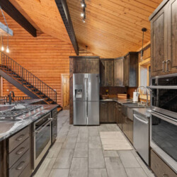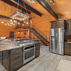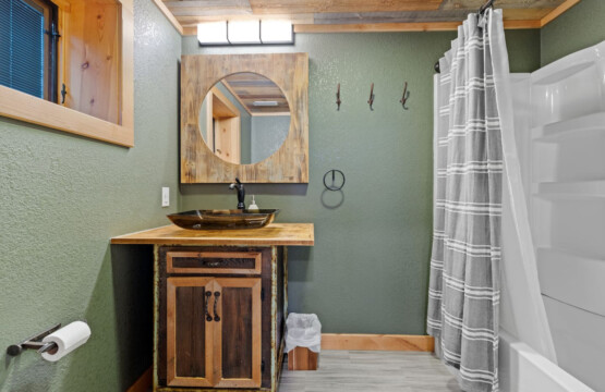 First one is Schroeder’s Grand Log Cabin Lodge — a spacious retreat featuring 5 bedrooms and 6 bathrooms.