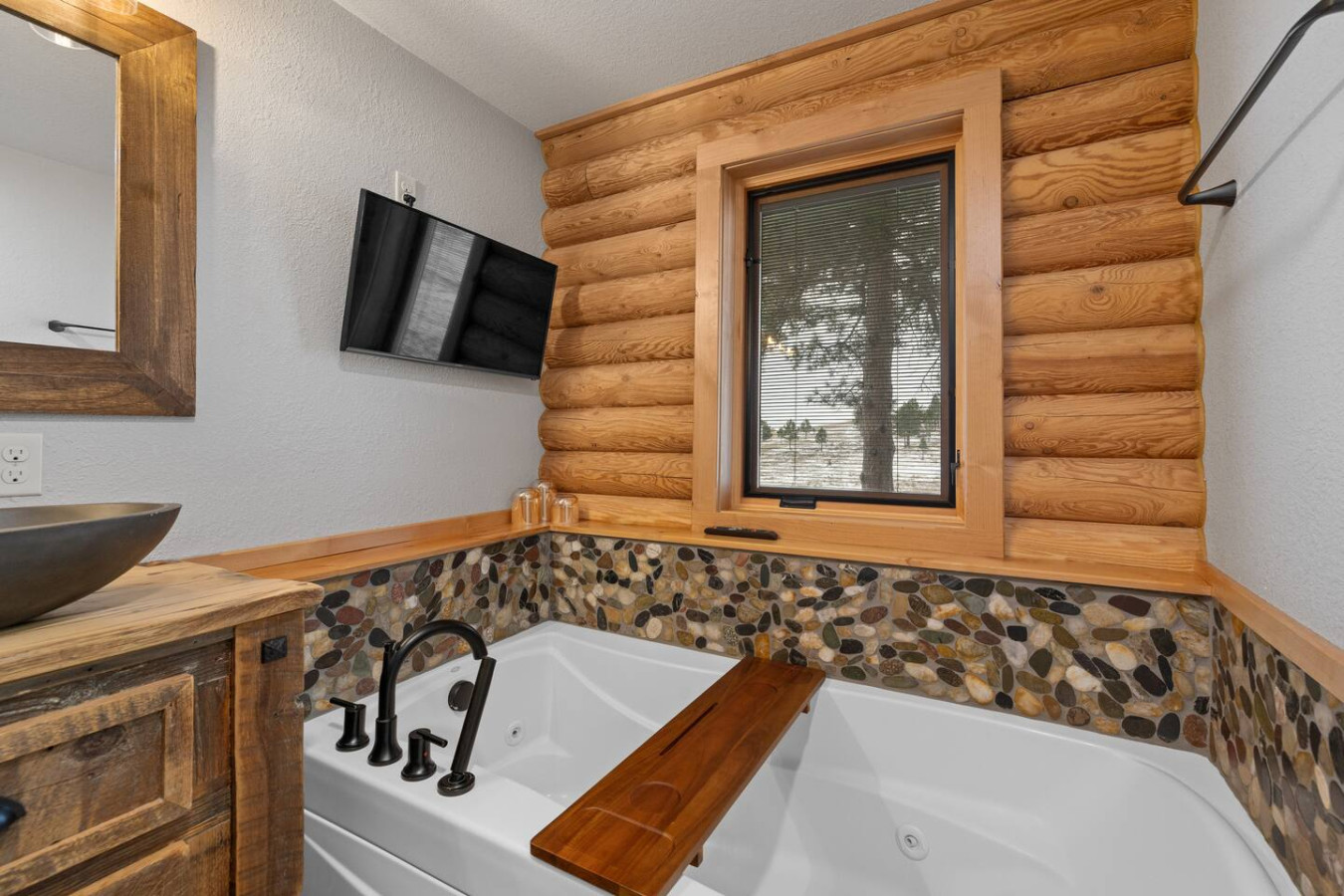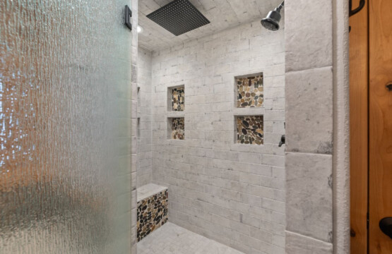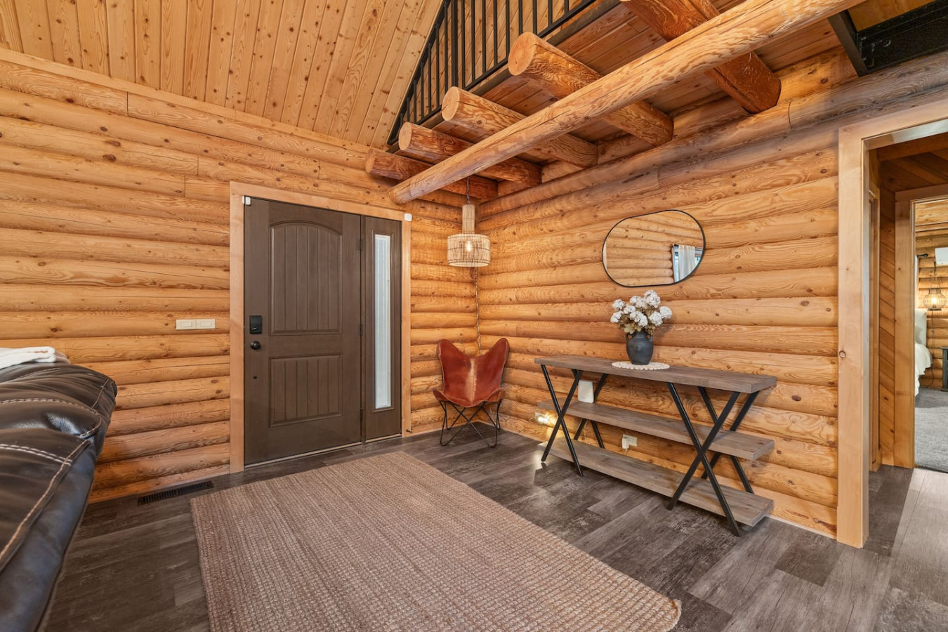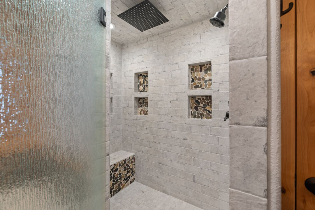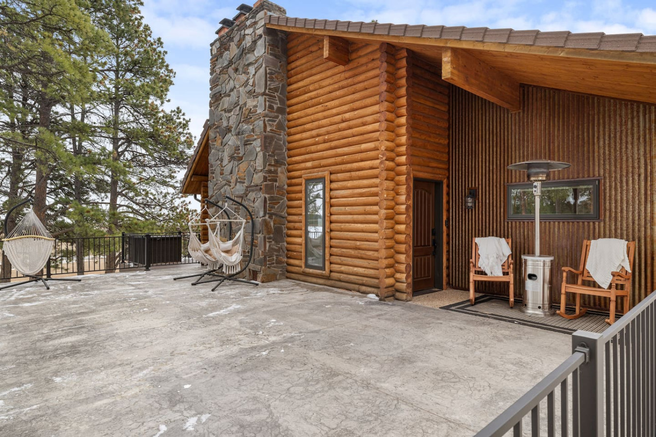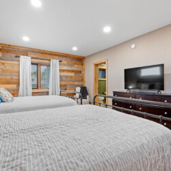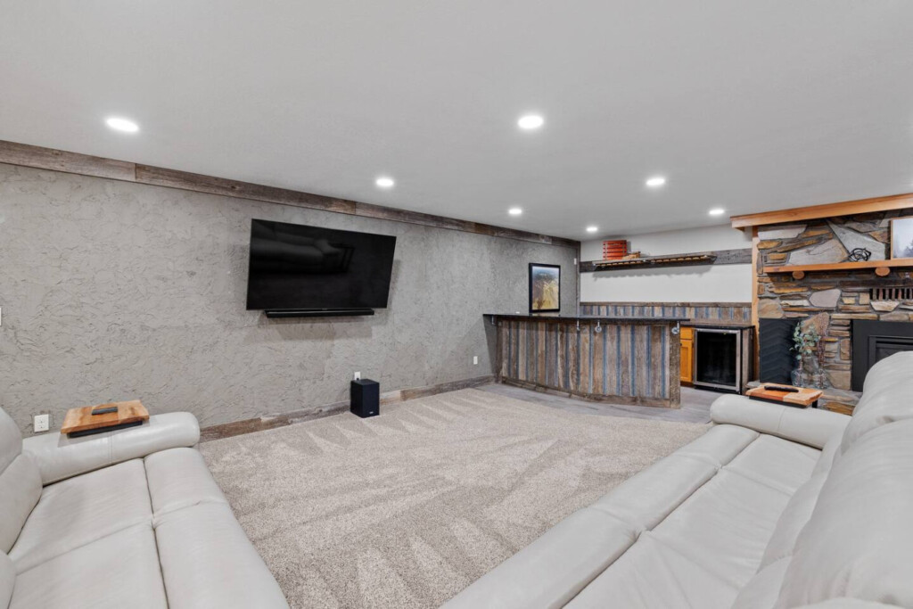 First one is Schroeder’s Grand Log Cabin Lodge — a spacious retreat featuring 5 bedrooms and 6 bathrooms.