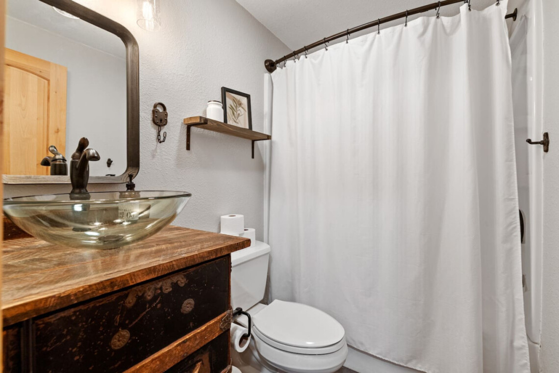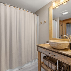 – Floors mopped, carpets vacuumed, surfaces scrubbed, and shower liners replaced between each stay