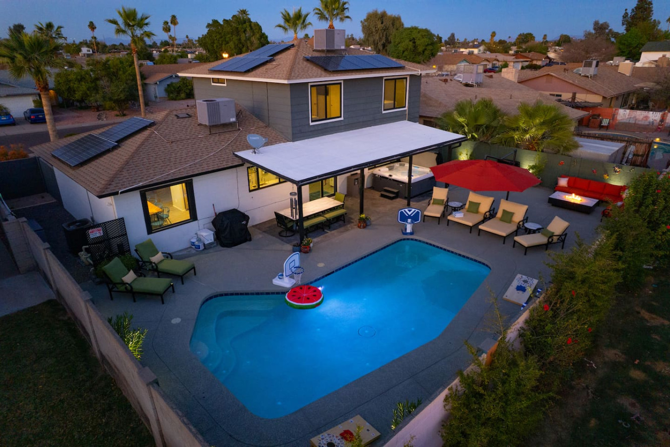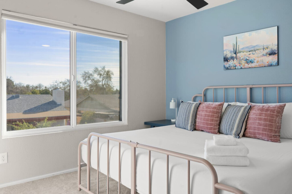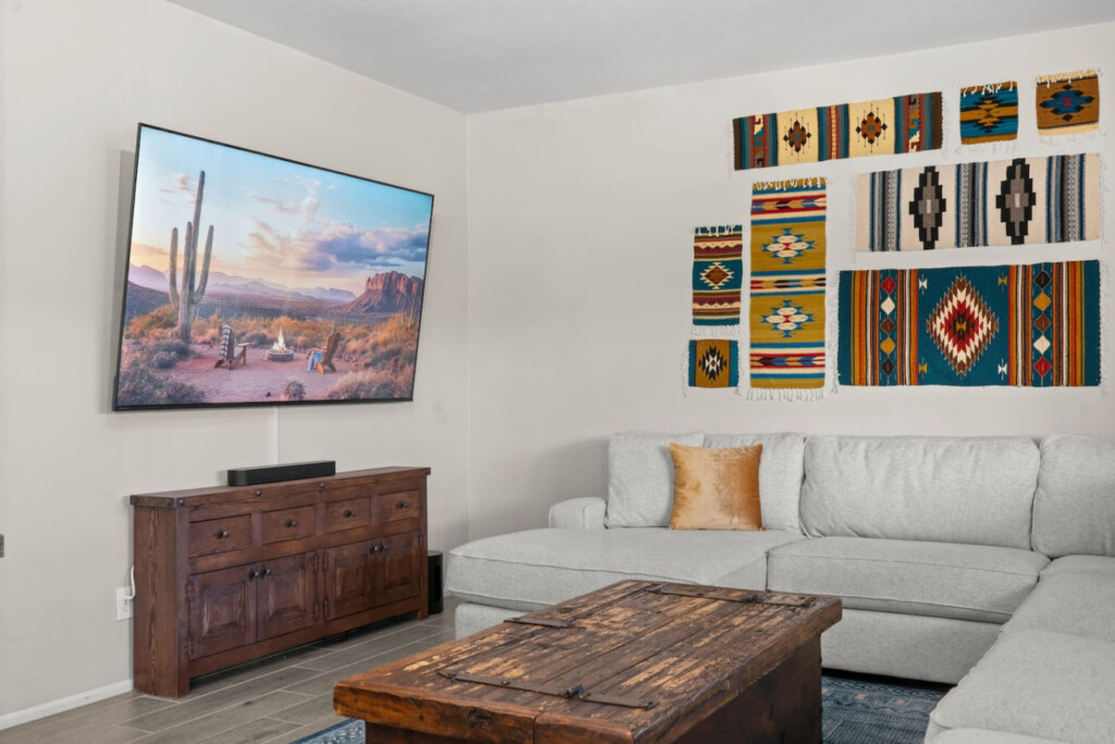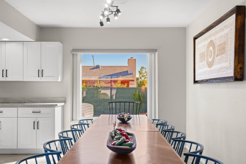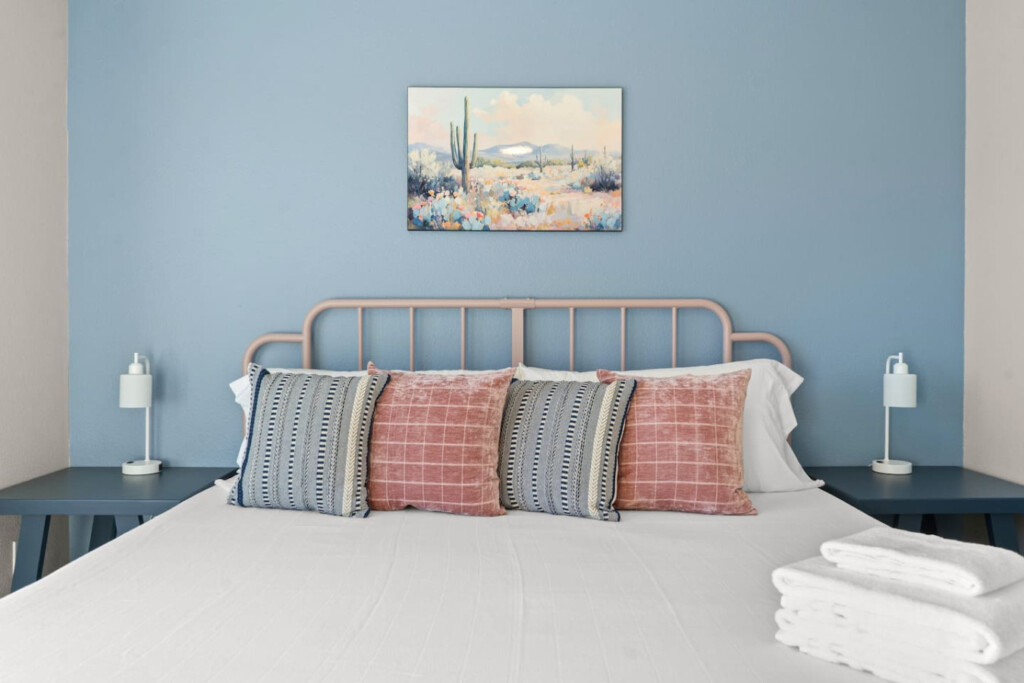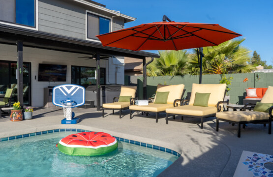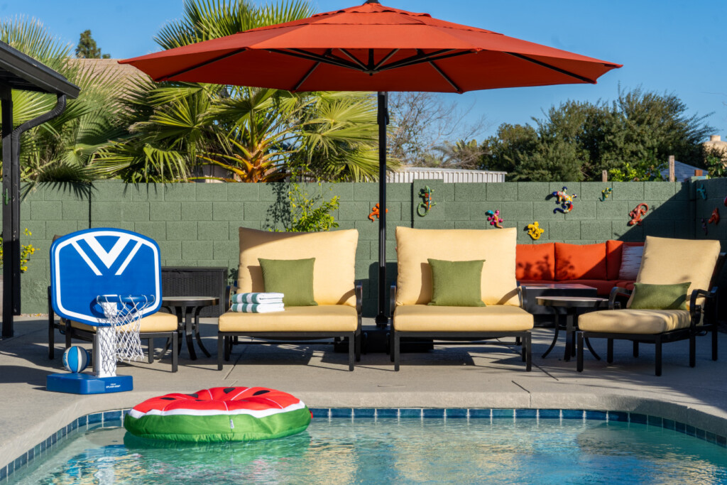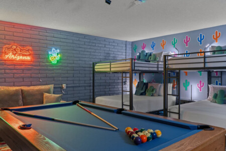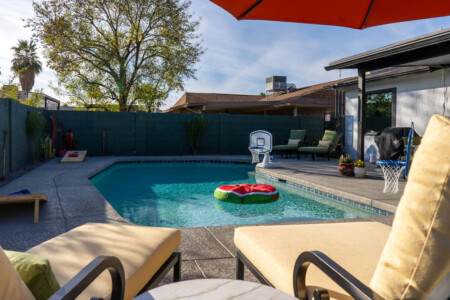 Stay in the heart of Glendale at Sonoran Luxe Oasis, a stylish 5‑bedroom retreat just 5–10 minutes from the city’s top attractions. Perfect for families, friends, and fun-seekers, the home features a bright open layout, stainless‑steel appliances, and a pool table for indoor entertainment. Outside, relax in a sparkling pool with colorful nighttime lighting, soak in the hot tub, gather around the cozy firepit, or enjoy outdoor games — an ideal spot for unforgettable gatherings.