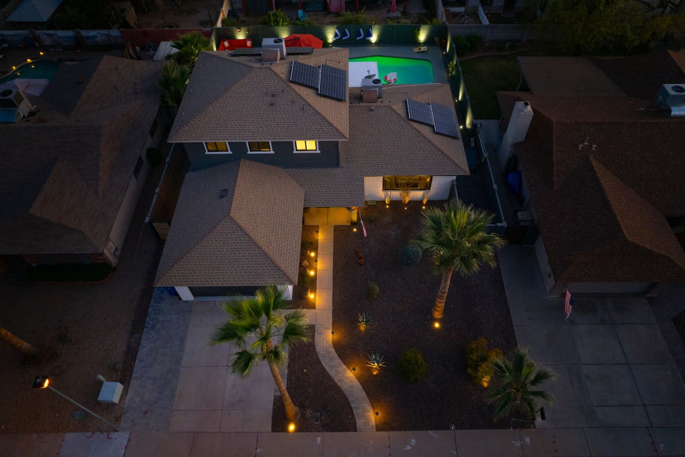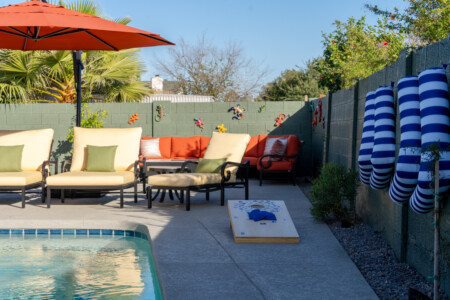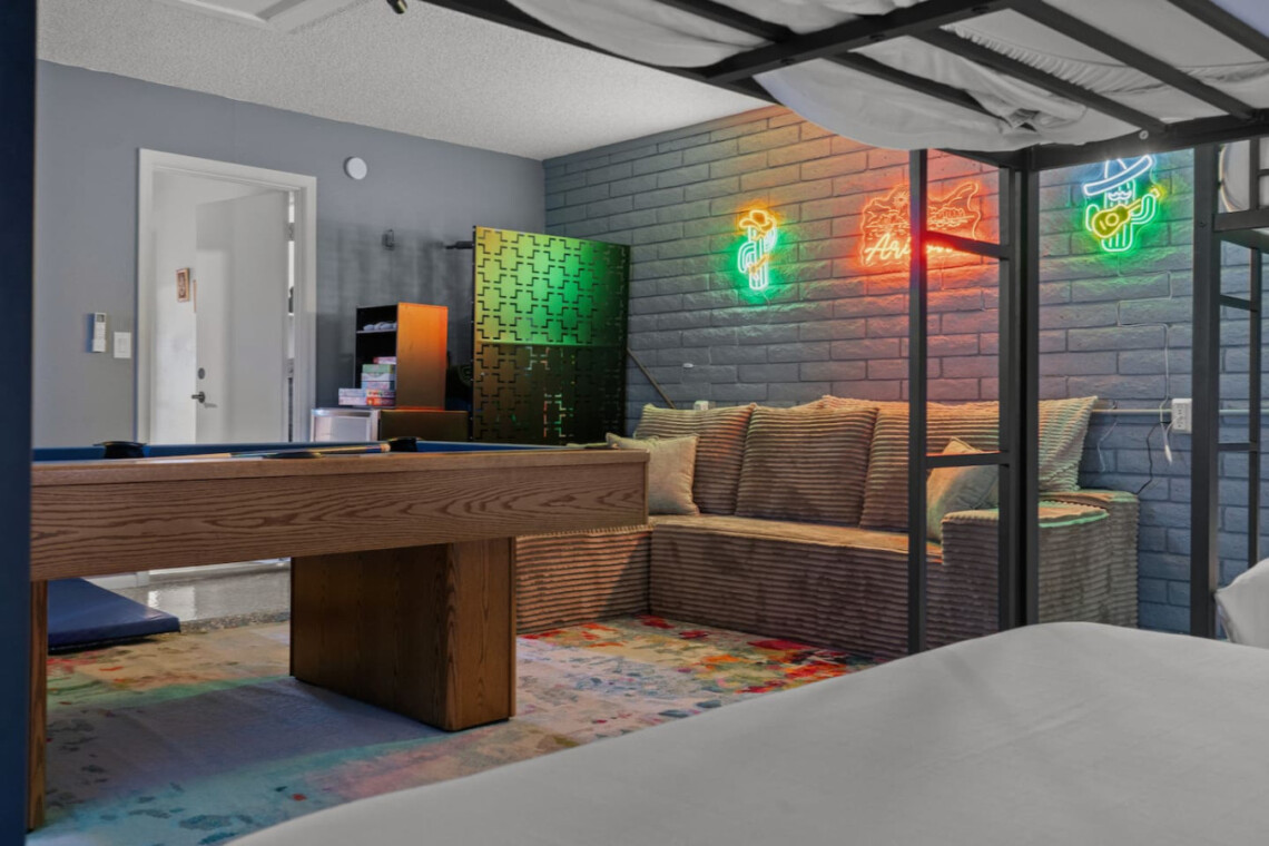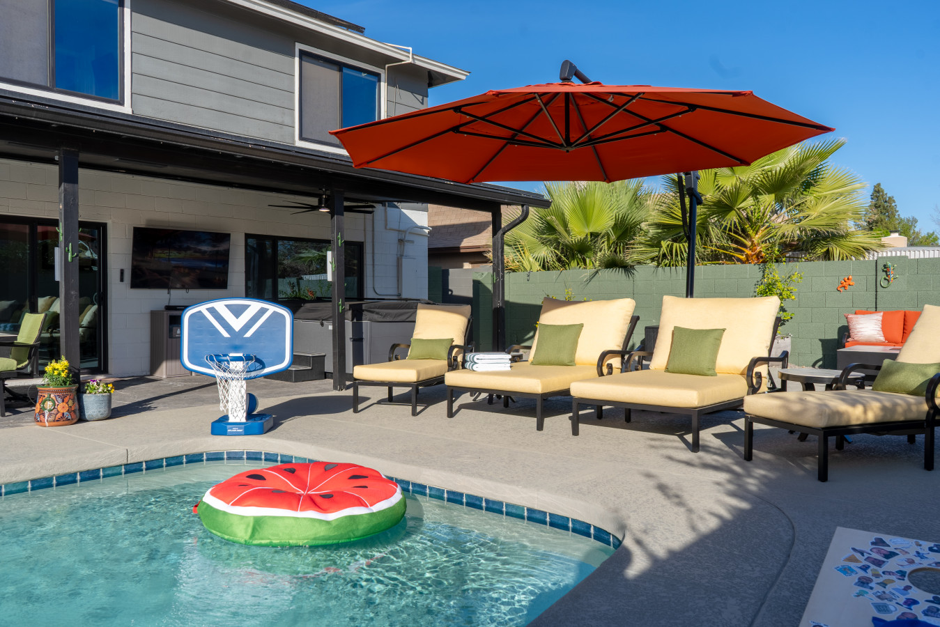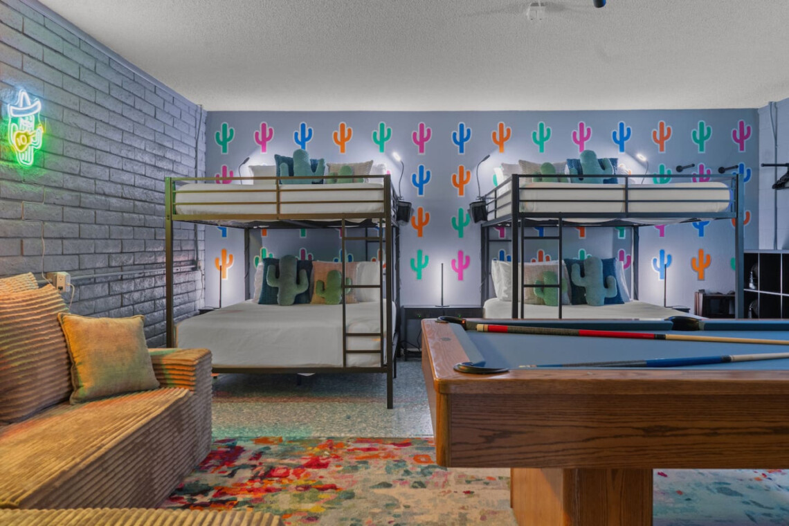 Stay in the heart of Glendale at Sonoran Luxe Oasis, a stylish 5‑bedroom retreat just 5–10 minutes from the city’s top attractions. Perfect for families, friends, and fun-seekers, the home features a bright open layout, stainless‑steel appliances, and a pool table for indoor entertainment. Outside, relax in a sparkling pool with colorful nighttime lighting, soak in the hot tub, gather around the cozy firepit, or enjoy outdoor games — an ideal spot for unforgettable gatherings.