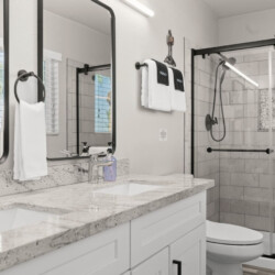 – Bathroom layout: 3 full bathrooms. 1 shared bathroom downstairs. Upstairs has an ensuite for the master’s bedroom, and one off of the hallway.